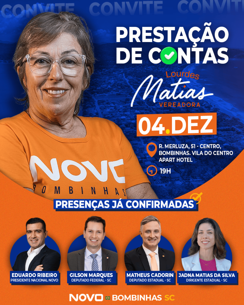 A vereadora Lourdes Matias divulgou o dia 04 de dezembro de 2025, como sendo a data que acontecerá a prestação de contas do seu mandato.